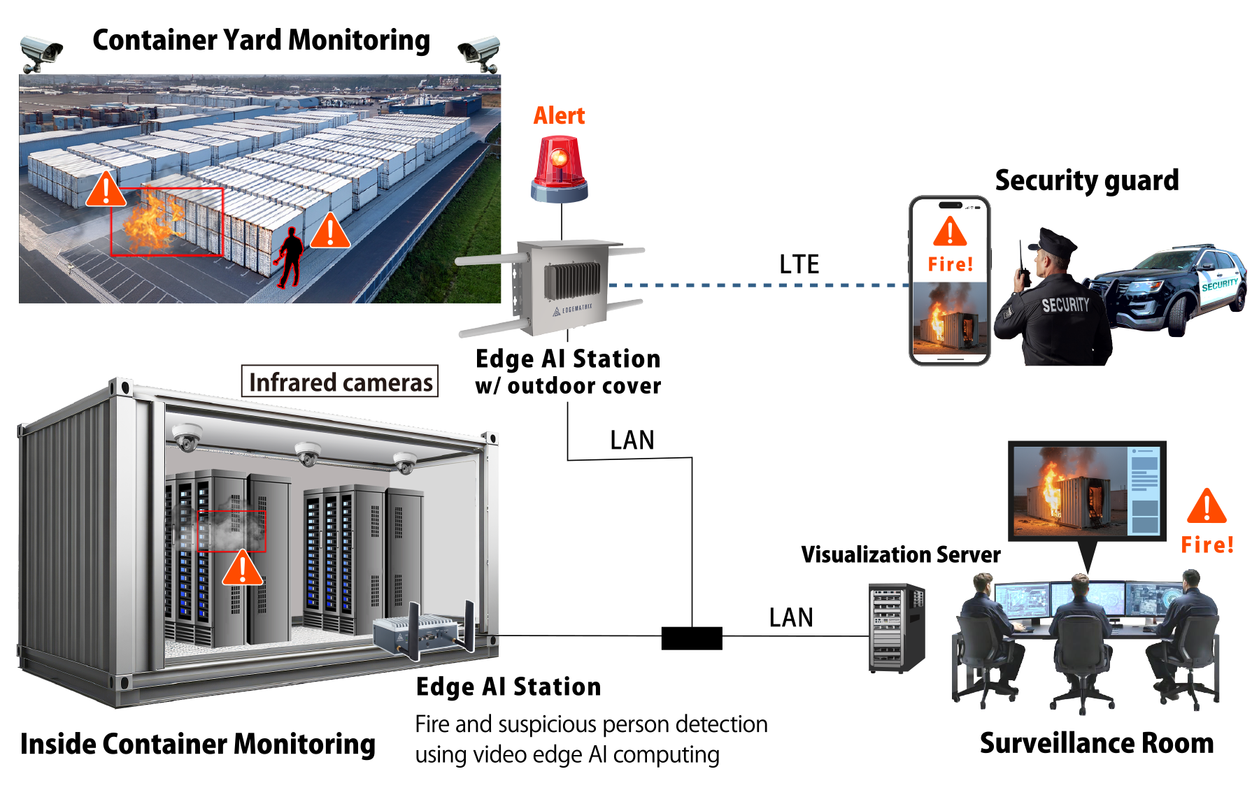 Video Edge AI® is a technology that uses AI to analyze and process video captured on site at high speed. By detecting abnormalities, dangers, and other events in real time through cameras and issuing warnings and reports, we increase safety, security, and efficiency in society. We make AI more accessible and accelerate your business by proposing the best solutions for your needs.