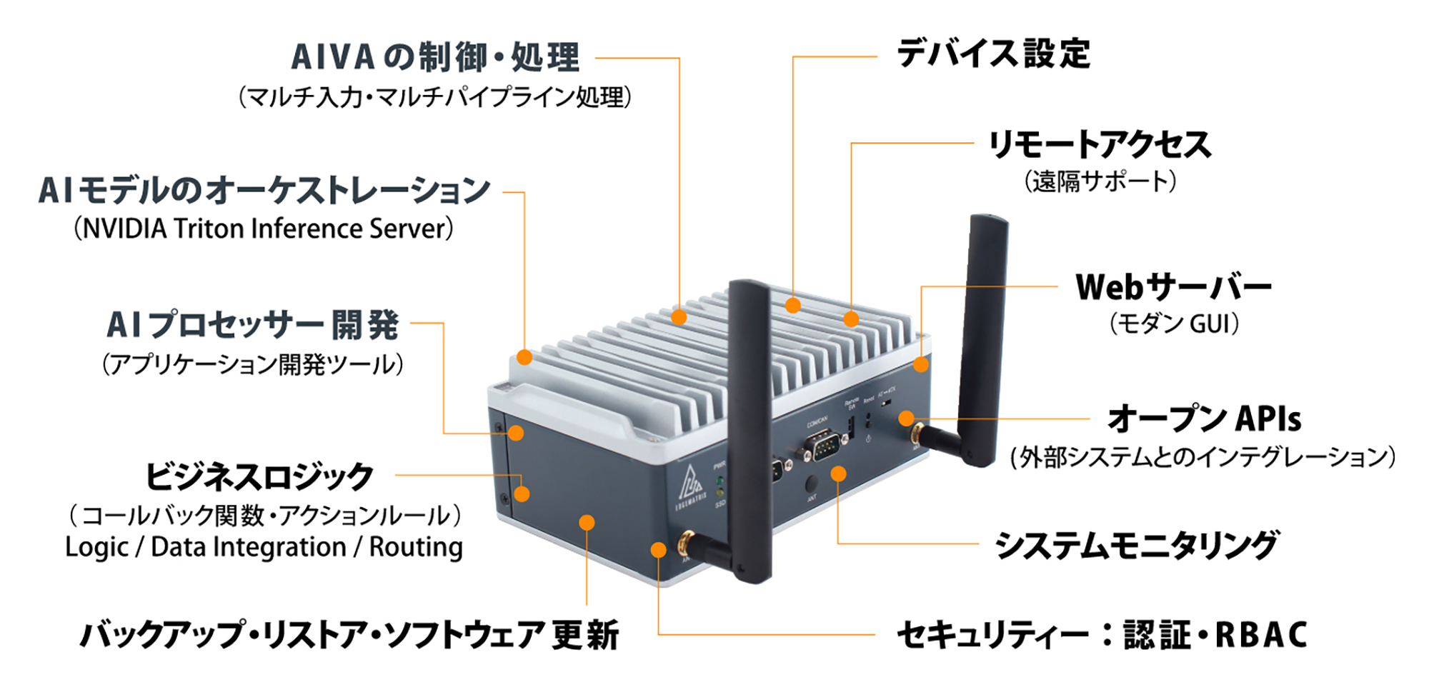 - 3. Edge AI Station アルファ:Edge AI Stationに汎用AIアプリケーションをプリインストールしたセット製品で、自社でのアプリ開発が不要で迅速な導入とコスト低減が可能。小規模から大規模・複雑な環境まで幅広いニーズに対応できる汎用性と高い処理能力を提供します。